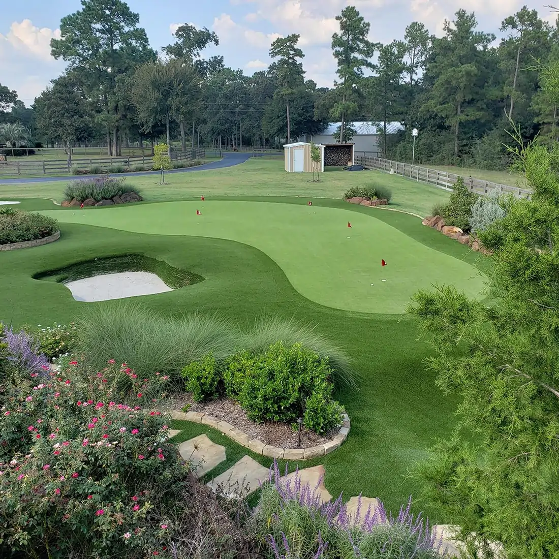 Installing a residential putting green helps reduce water consumption, which is particularly beneficial in areas like Jacksonville, FL, where water conservation is essential. Additionally, the elimination of chemical fertilizers and pesticides contributes to a healthier environment, making our putting greens eco-friendly.