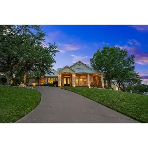 - Trees or shrubs that frame the entrance