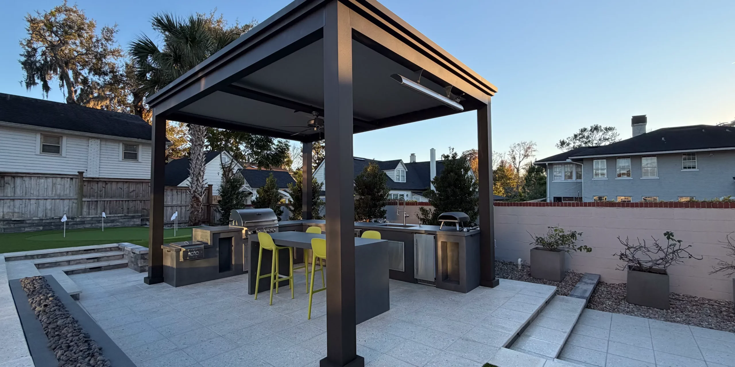 Pergolas are one of the most versatile additions to any outdoor space. These elegant open-air structures provide partial shade while maintaining airflow, which is perfect for Jacksonville’s coastal climate. Installed over a patio, outdoor kitchen, or seating area, pergolas create a defined space that feels intentional and inviting.