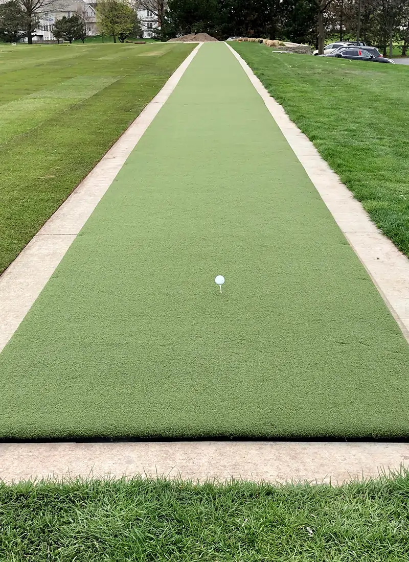 From custom tee boxes and driving range mats to versatile chipping areas that simulate real course conditions, our installations are built for durability, performance, and year-round use. Our advanced turf technology closely mimics natural grass, offering true ball response and superior shot-holding ability—thanks to uniquely engineered blade structure and a proprietary cushioned underlayment.